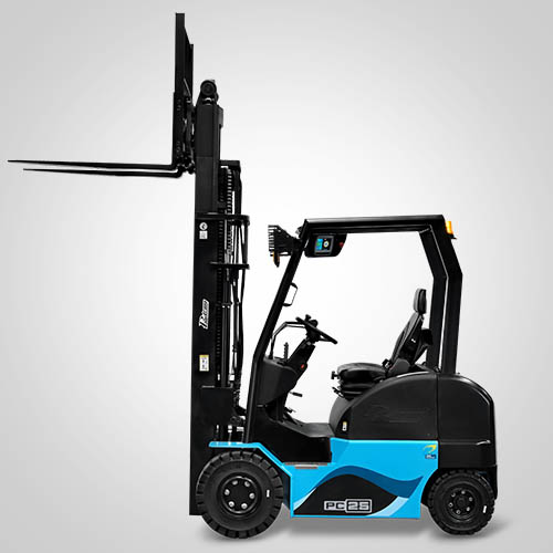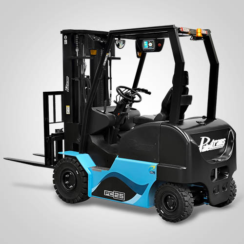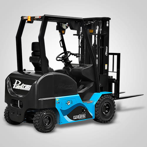 A empilhadeira Contrabalançada PC25 Paletrans é capaz de trabalhar em corredores operacionais de mercado (a partir de 3.855 m). Além de manutenção simples, a empilhadeira contrabalançada da Paletrans têm baixo custo de reposição e peças disponíveis em todo o Brasil. A linha PC25 pode operar em três turnos, apenas realizando cargas de oportunidades na bateria. Para a recarga da bateria, é necessário um carregador para bateria de lítio. A empilhadeira contrabalançada Paletrans é fabricada com os melhores componentes do mundo. Têm controladores, motores de tração e elevação reconhecidos internacionalmente. São equipadas com display digital, emitem alertas de manutenção preventiva e podem vir com câmera para visualização da imagem no garfo. Capacidade de carga de 2.500 quilos e elevação máxima de 4.80 metros.