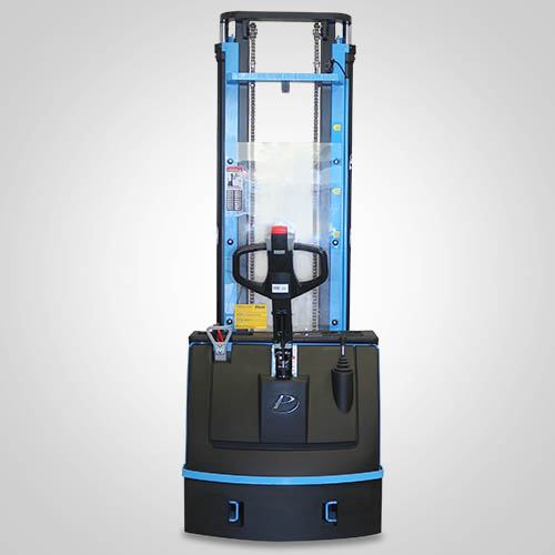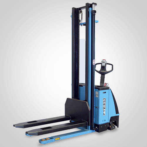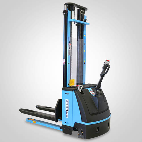 A empilhadeira elétrica patolada PT1635 tem tração e elevação por acionamento elétrico. Nesta linha, existe a possibilidade de instalar uma plataforma opcional para operador em pé, a bordo. É patolada e opera exclusivamente em paletes abertos e é ideal para almoxarifados e carga e descarga de caminhões e camionetes. A elevação do garfo é feita pelo acionamento da alavanca, que bombeia o óleo hidráulico para o conjunto e movimenta o pistão interno de elevação. Com isso, essa operação de elevação não necessita esforço do operador. A empilhadeira PT1635 Paletrans possui manutenção extremamente simplificada e de baixo custo. Precisa apenas de cuidados simples em seu dia a dia. Possui rodas de de carga em poliuretano e ótima condição de manobra, operando em corredores de até 2,28 metros de largura. Seu suprimento de energia é através de uma bateria tracionária. Desta forma, a empilhadeira pode operar em três turnos, apenas trocando a bateria por uma recarregada. Para o recarregamento da bateria, é necessário um carregador para bateria tracionária. Tem capacidade de carga de 1.600 quilos e elevação máxima de 3,50 metro.