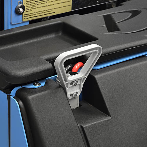 Operação: apta a trabalhar em três turnos. Com a solução de bateria de chumbo ácido, basta realizar a troca por uma bateria carregada. Já com a solução de bateria de lítio, o equipamento estará disponível rapidamente através de uma recarga de oportunidade.
