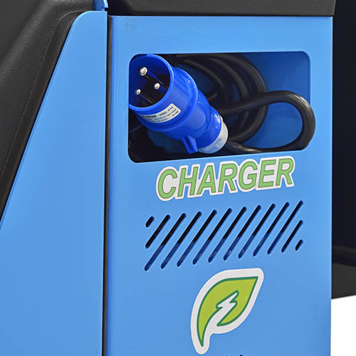 Recarga: realizada por carregador de baterias embutido na própria empilhadeira