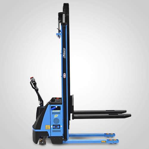 A empilhadeira elétrica patolada PTL1645 Fast tem velocidade de elevação 30% maior do que a linha PT tradicional. Nesta linha, existe a possibilidade de instalar uma plataforma opcional para operador em pé, a bordo. É patolada e opera exclusivamente em paletes abertos e é ideal para almoxarifados e carga e descarga de caminhões e camionetes. A elevação do garfo é feita através do acionamento de comando elétrico que bombeia o óleo hidráulico para dentro do conjunto e movimenta o pistão interno de elevação. Com isso, essa operação de elevação não necessita esforço do operador. A empilhadeira PTL1645 Fast Paletrans possui manutenção extremamente simplificada e de baixo custo. Precisa apenas de cuidados simples em seu dia a dia. Possui rodas de carga em poliuretano e ótima condição de manobra, operando em corredores de até 2,28 metros de largura. Seu suprimento de energia é através de uma bateria de lítio integrada. Desta forma, a empilhadeira pode operar em três turnos, sem trocar a bateria. Para o recarregamento da bateria, é necessário um carregador para bateria de lítio. Tem capacidade de carga de 1.600 quilos e elevação máxima de 4,50 metros.