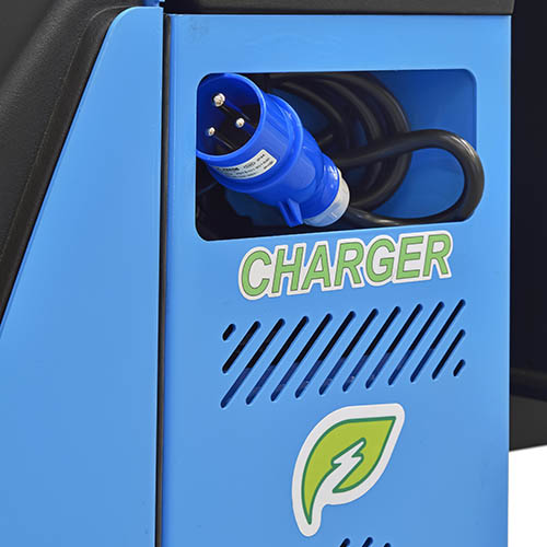 Recarga: realizada por carregador de baterias embutido na própria empilhadeira