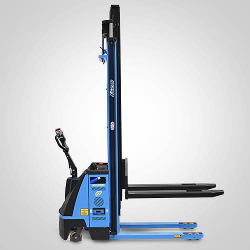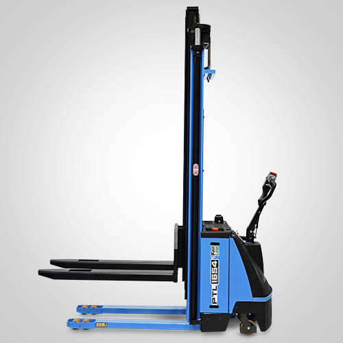 A empilhadeira elétrica patolada PTL1654 Fast tem velocidade de elevação 30% maior do que a linha PT tradicional. Nesta linha, existe a possibilidade de instalar uma plataforma opcional para operador em pé, a bordo. É patolada e opera exclusivamente em paletes abertos e é ideal para almoxarifados e carga e descarga de caminhões e camionetes. A elevação do garfo é feita através do acionamento de comando elétrico que bombeia o óleo hidráulico para dentro do conjunto e movimenta o pistão interno de elevação. Com isso, essa operação de elevação não necessita esforço do operador. A empilhadeira PTL1654 Fast Paletrans possui manutenção extremamente simplificada e de baixo custo. Precisa apenas de cuidados simples em seu dia a dia. Possui rodas de carga em poliuretano e ótima condição de manobra, operando em corredores de até 2,28 metros de largura. Seu suprimento de energia é através de uma bateria de lítio integrada. Desta forma, a empilhadeira pode operar em três turnos, sem trocar a bateria. Para o recarregamento da bateria, é necessário um carregador para bateria de lítio. Tem capacidade de carga de 1.600 quilos e elevação máxima de 5,40 metros.