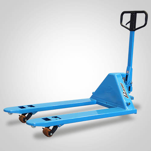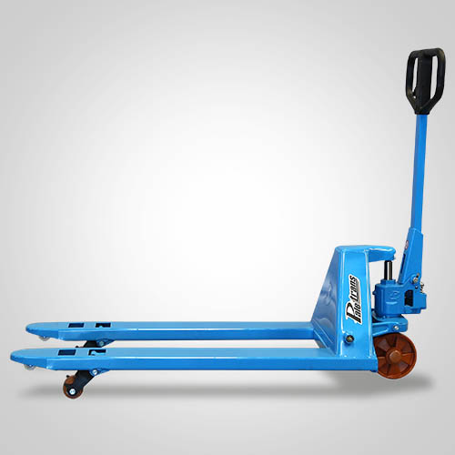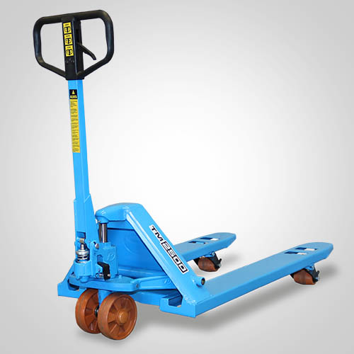 O Transpalete Manual da Paletrans, linha TM, é perfeito para o seu negócio. Ele pode operar tanto em paletes abertos quanto em paletes dupla face. O modelo TM2500 RSP 680 tem capacidade de carga de 2.500 kg, com opção para rodas em poliuretano. Os modelos têm rodas simples em poliuretano, sendo uma roda em cada extremidade do garfo. O garfo possui largura de 680 mm e comprimento útil de 1.150 mm.