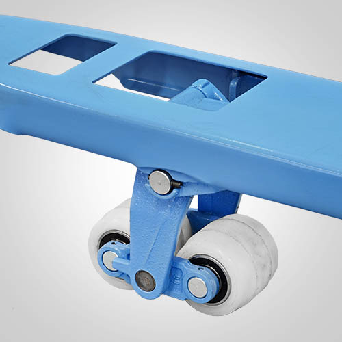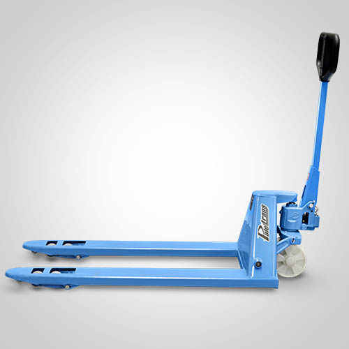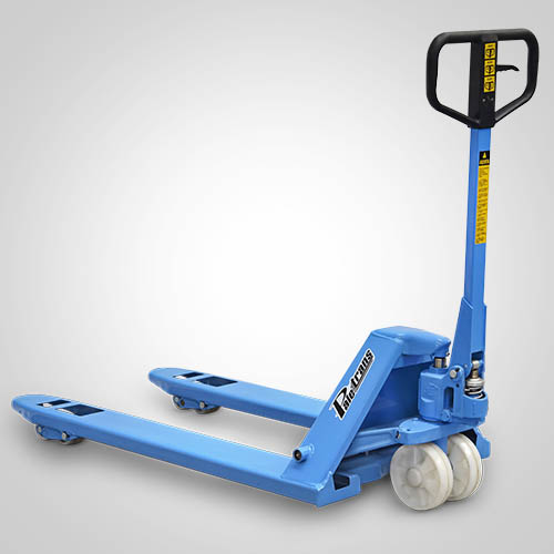 O Transpalete Manual da Paletrans, linha TM, é perfeito para o seu negócio. Ele pode operar tanto em paletes abertos quanto em paletes dupla face. O modelo TM3000 RTN 680 tem capacidade de carga de 3.000 kg, com rodas tandem em (trucado) nas extremidades do garfo em nylon. O garfo possui largura de 680 mm e chega a um comprimento útil de 1.150 mm.